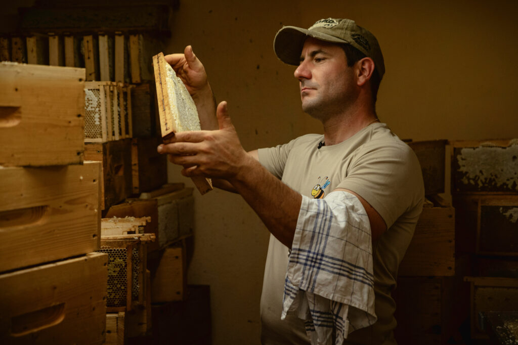 Chaque récolte est réalisée à la main, dans le respect des abeilles et des saisons, garantissant ainsi un miel artisanal non altéré, sans additifs ni conservateurs